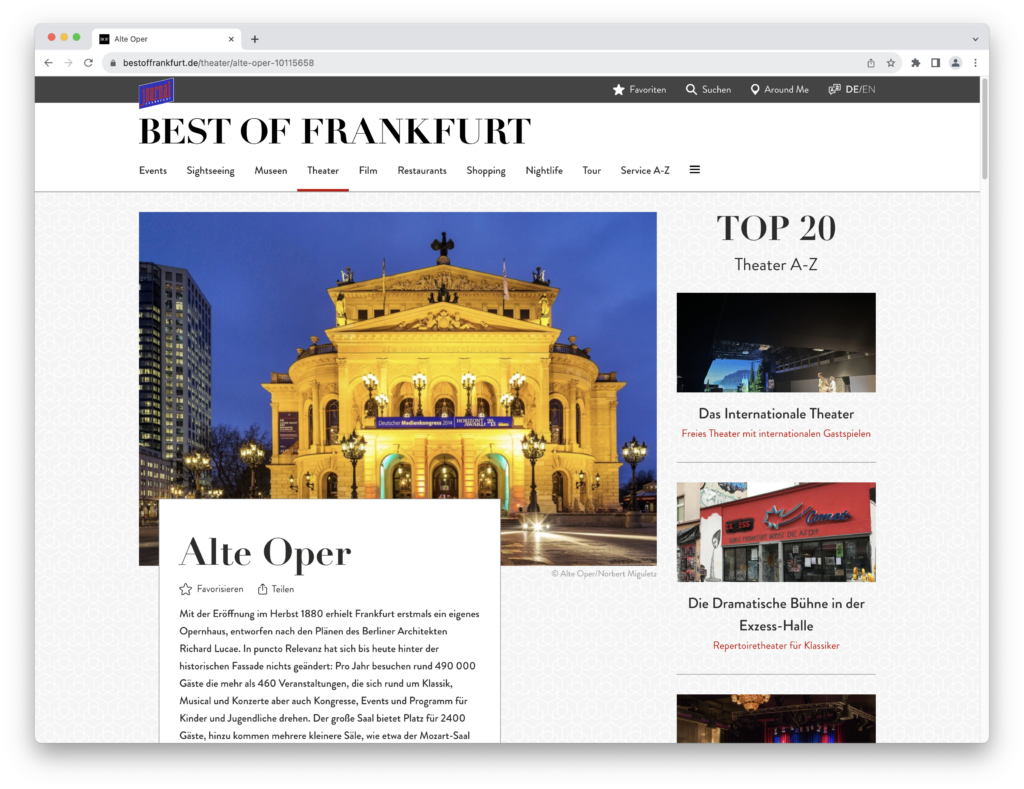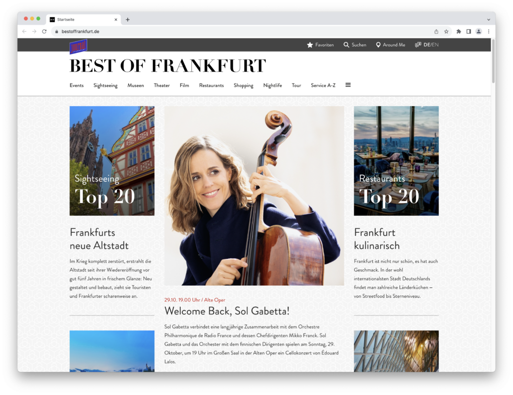 Hier liefert BEST OF FRANKFURT die Antworten. Redaktionell kompetent, technisch zeitgemäß und in enger Kooperation mit der Frankfurter Hotel Alliance.