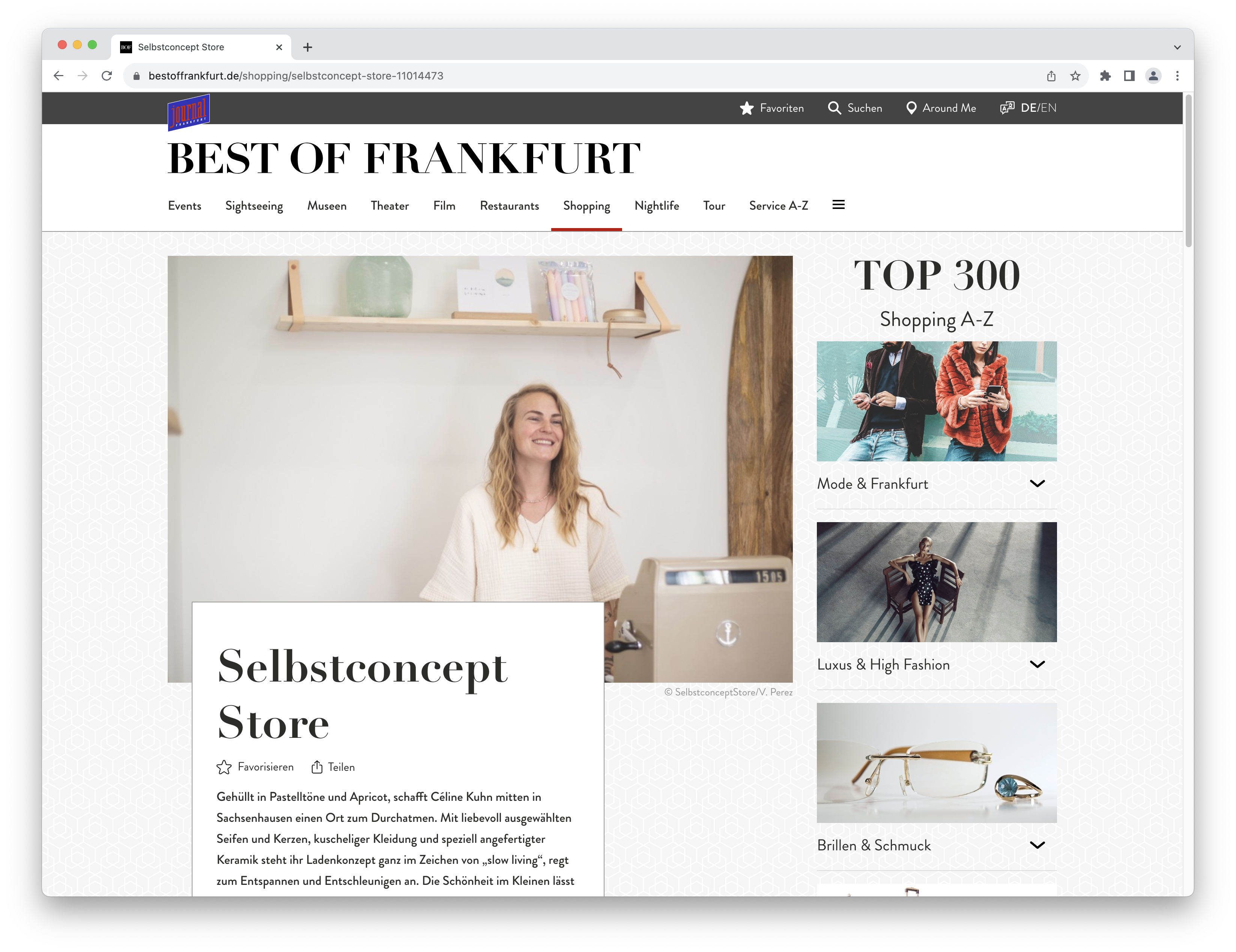 Angereichertes FirmenporträtPlatzierung: Rubrik Shopping