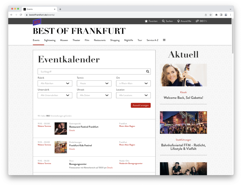 Einzelevent eines VeranstaltersPlatzierung: Rubrik Events